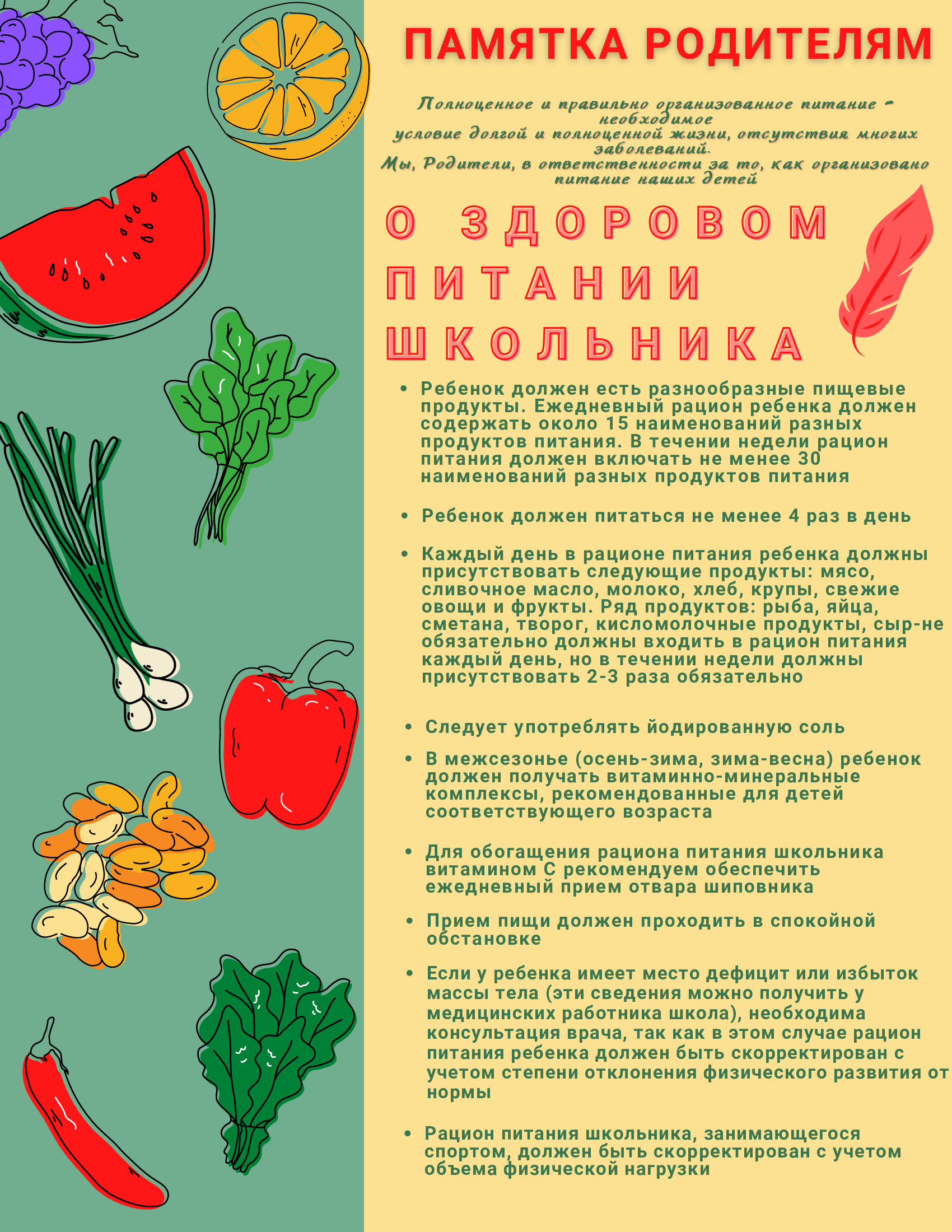 Информация о здоровом питании: