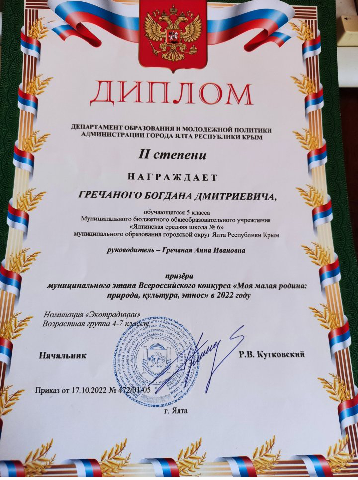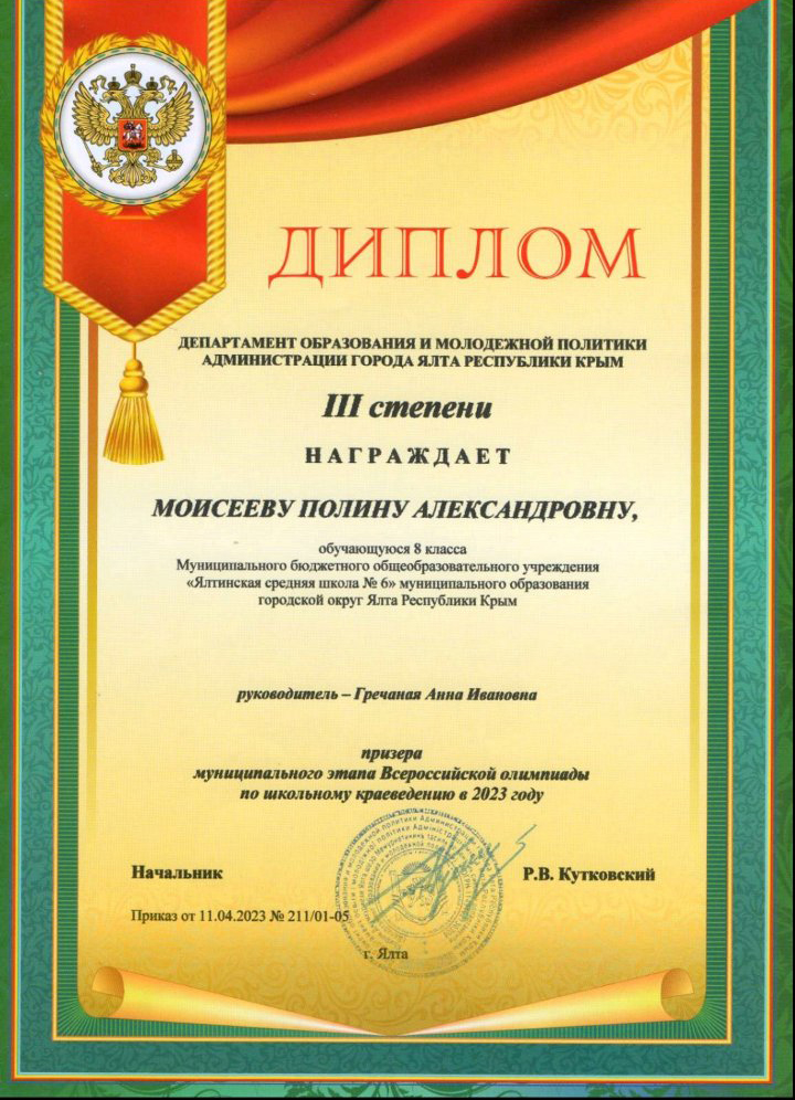 Муниципальное бюджетное общеобразовательное учреждение «Ялтинская средняя школа № 6» муниципального округа город-курорт Ялта Республики Крым